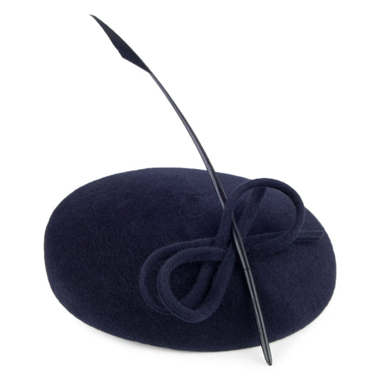 Boina de fieltro de piel y pluma decorativa de Whiteley - Azul Marino