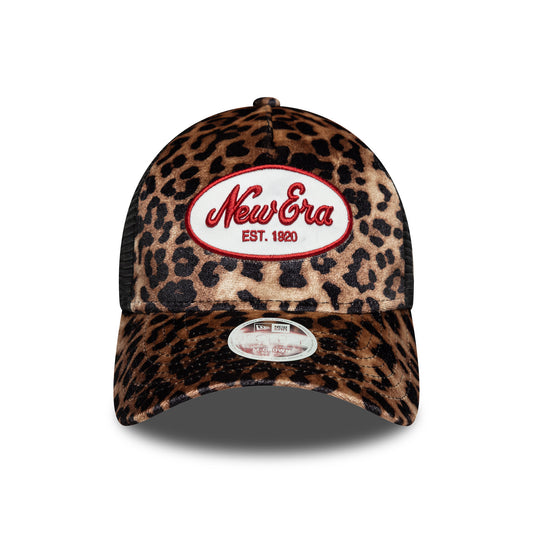 Gorra de camionero 9FORTY M-Crown A-Frame NE Leopard de New Era - Marrón Claro-Negro