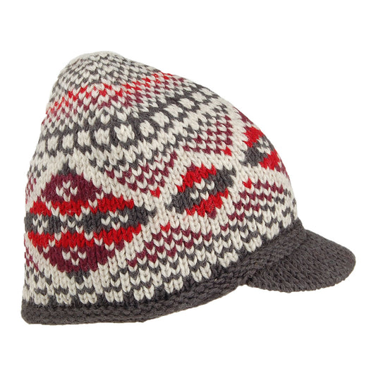 Gorro Beanie con visera Brooklyn Fair Isle de Kusan - Rojo-Gris