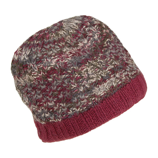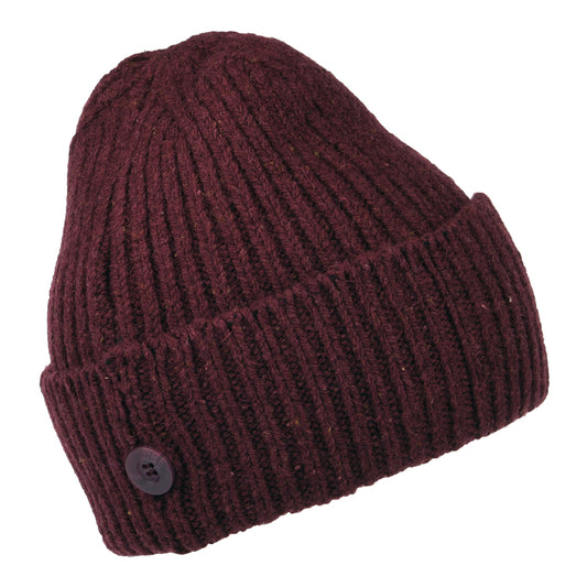 Gorro Beanie Cuffed de lana inglesa de punto cable de Highland 2000 - Mezcla de Burdeos