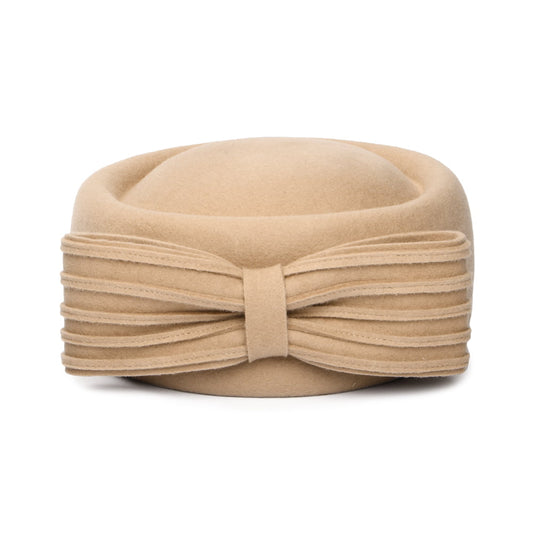 Sombrero Pillbox Jackie O con lazo decorativo de lana de Whiteley - Camel