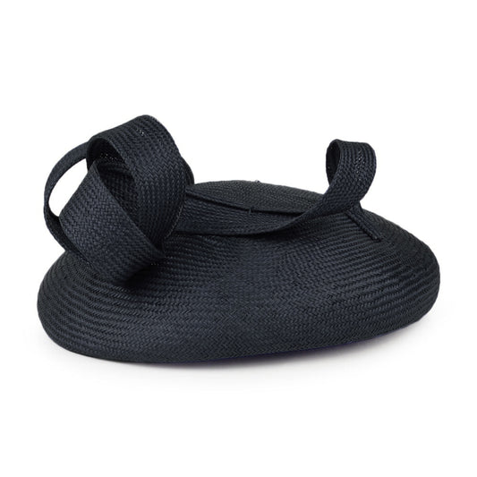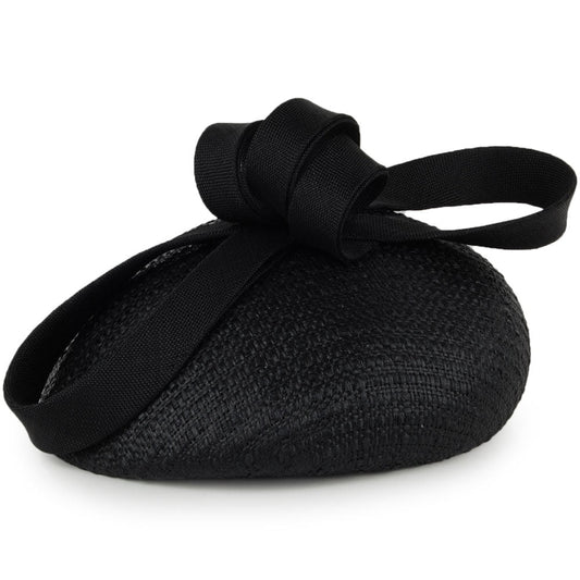 Sombrero Pillbox Jackie O con lazo decorativo de lana de Whiteley - Negro