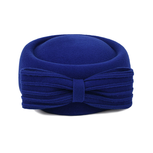 Sombrero Pillbox Jackie O con lazo decorativo de lana de Whiteley - Azul Real