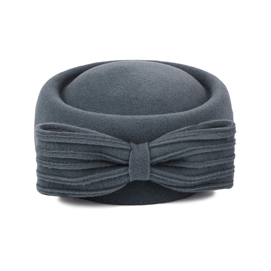 Sombrero Pillbox Jackie O con lazo decorativo de lana de Whiteley - Antracita