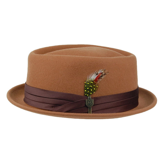 Sombrero Pork Pie Stout de fieltro de lana de Brixton - Camel