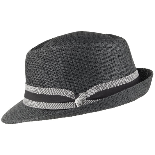 Sombrero Trilby de paja matte toyo con cinta decorativa a rayas de Dorfman Pacific - Negro