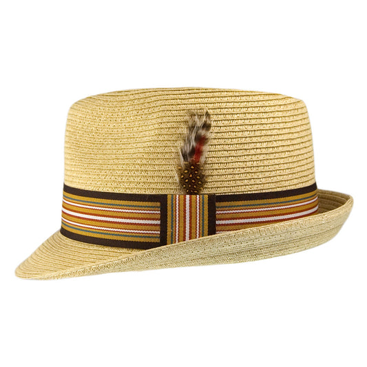 Sombrero Trilby de paja con cinta decorativa a rayas de Scala -Tostado