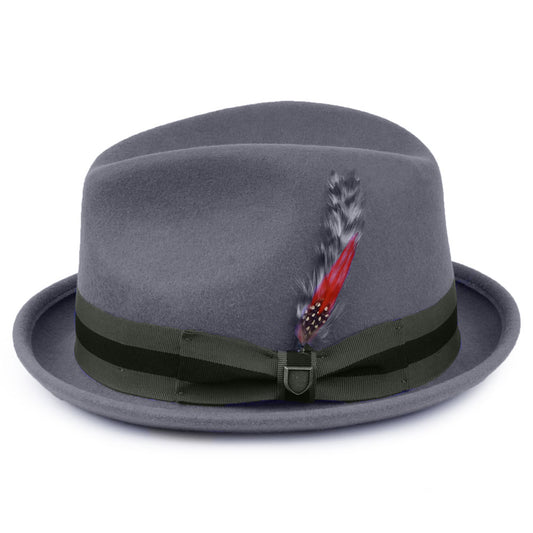 Sombrero Trilby Gain de fieltro de lana con cinta decorativa a rayas de Brixton - Gris