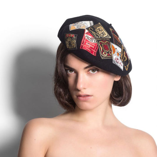 Boina Eridan de Laulhère con Parches Vintage en Lana Merino - Negro