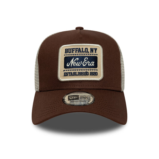 Gorra de camionero A-Frame con parche NE de New Era - Chocolate-Piedra