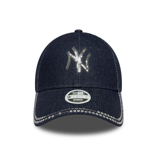 Gorra de béisbol 9FORTY MLB Sequin Denim New York Yankees para mujeres de New Era - Azul Oscuro