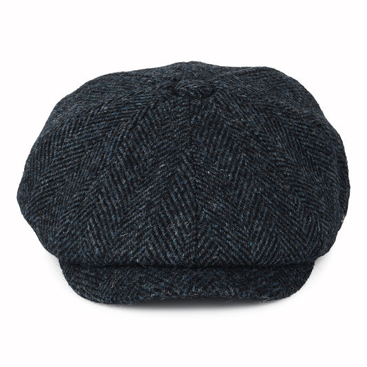 Gorra Newsboy redonda Carloway de Harris Tweed diseño de espiga de Failsworth - Azul-Negro