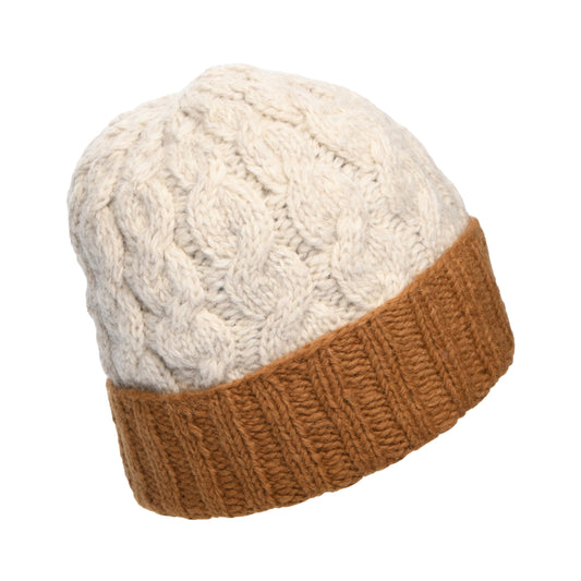 Gorro Beanie 2-Tone con vuelta de punto trenzado de Kusan - Crema-Tofe