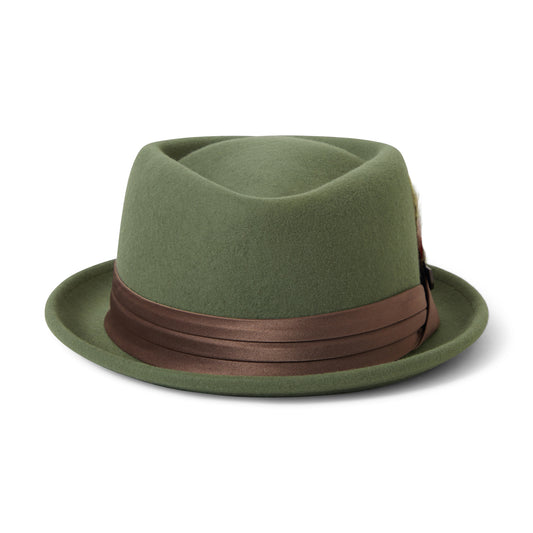 Sombrero Pork Pie Stout de fieltro de lana de Brixton - Verde Oliva-Bronce
