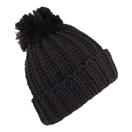 Gorro con pompón Cuffed de lana inglesa Chunky de Highland 2000 - Negro