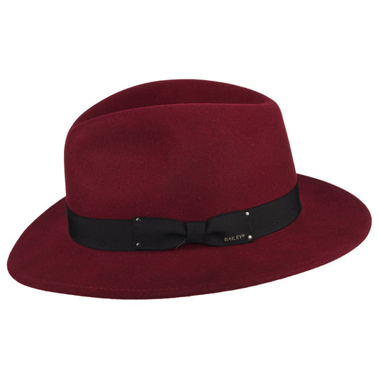 Sombrero Fedora Curtis plegable Repelente de agua de fieltro de lana de Bailey - Vino