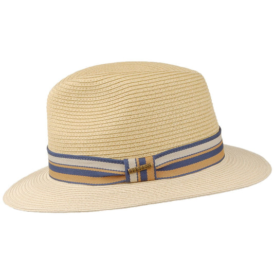 Sombrero Fedora Traveller de paja toyo de Stetson - Marrón Claro-Azul