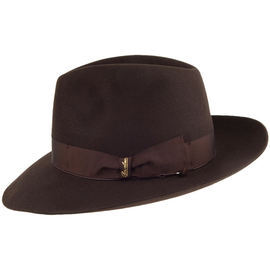 Sombrero Fedora Avalon de fieltro de piel de Borsalino - Marrón Oscuro