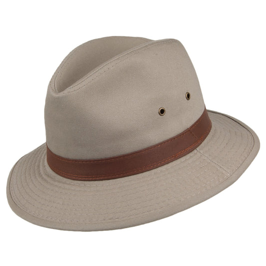 Sombrero Fedora Safari Rondavel de algodón de Dorfman Pacific - Kaki