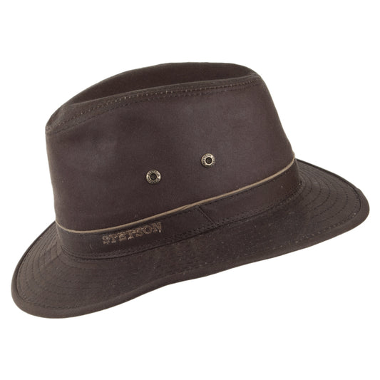 Sombrero Fedora Safari Ava repelente al agua de algodón encerado de Stetson - Marrón