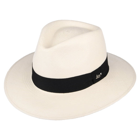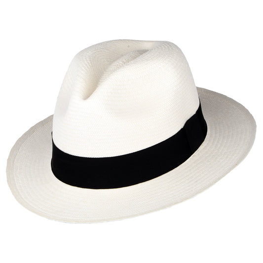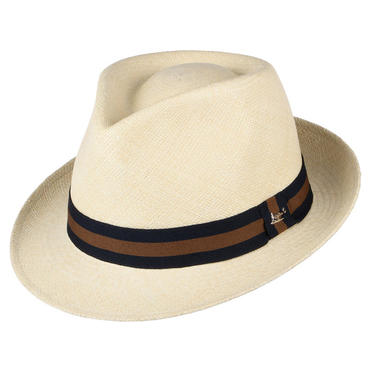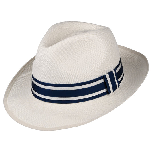 Sombrero Fedora Panamá Fino con cinta decorativa negra de Borsalino - Decolorado