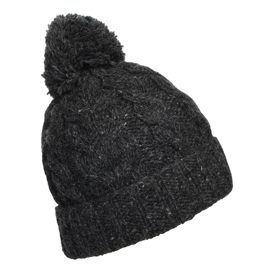 Gorro con pompón con vuelta de punto trenzado de Kusan - Antracita