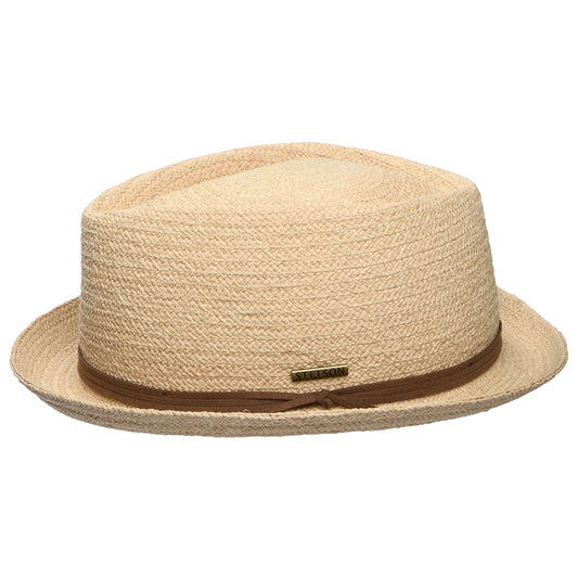 Sombrero Pork Pie Copa Diamante de rafia de Stetson - Natural