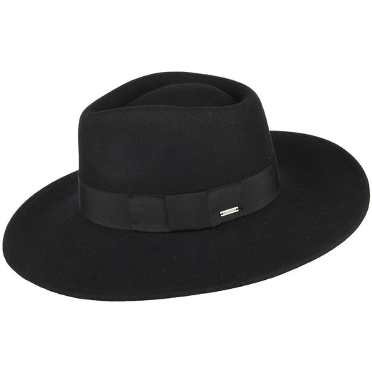 Sombrero Fedora Joanna de ala ancha de fieltro de lana de Brixton - Negro