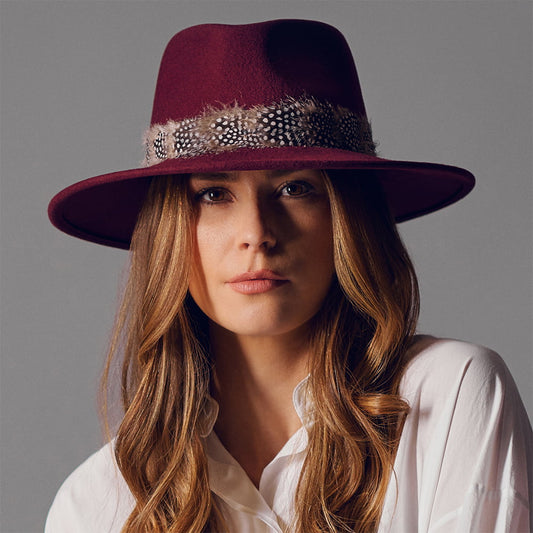 Sombrero Fedora Country pluma de Failsworth - Merlot