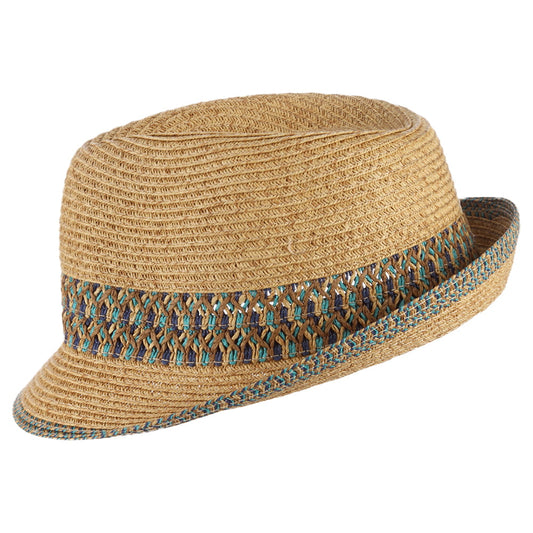 Sombrero Trilby de trenzado de paja de Scala - Natural-Azul