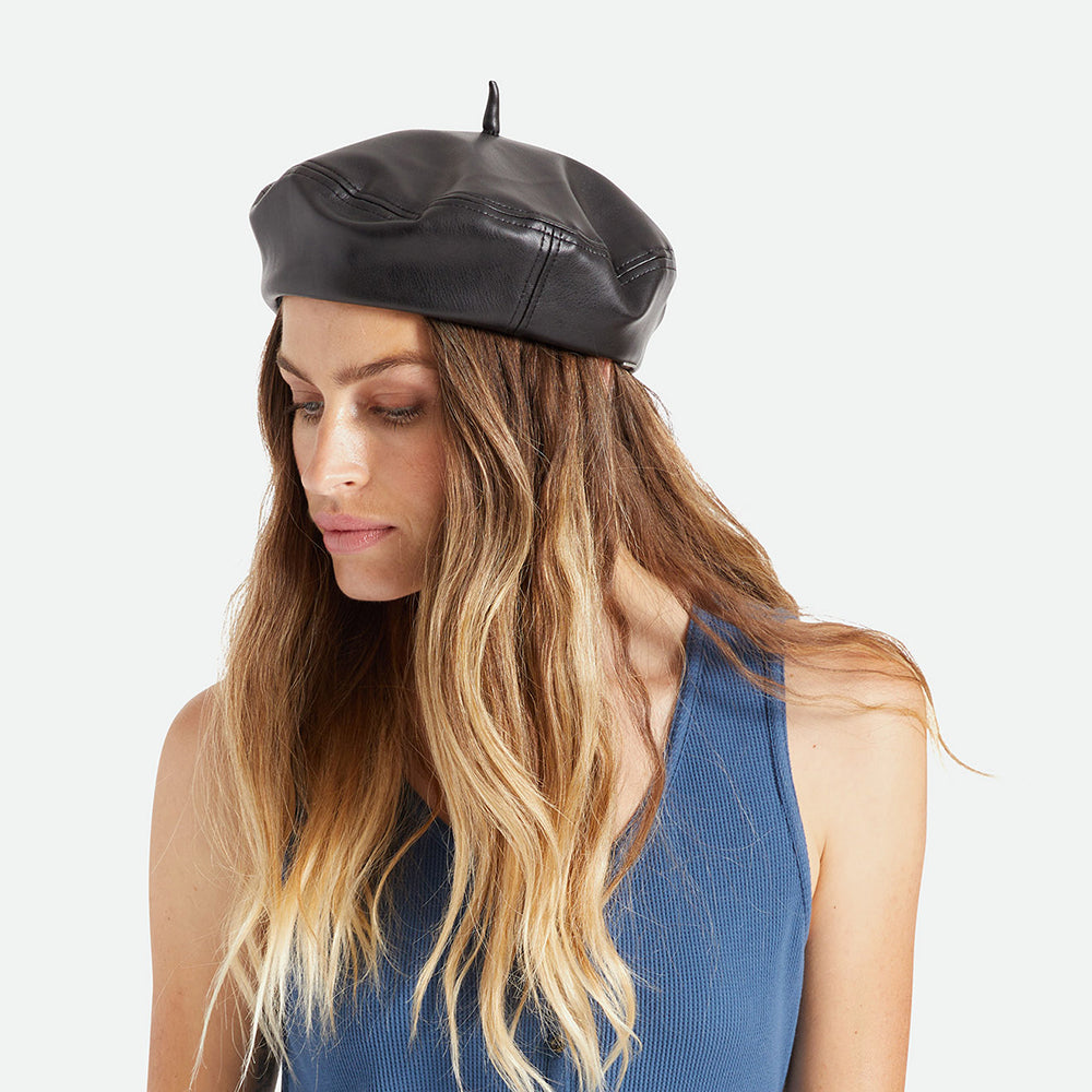 Boina mujeres Audrey II de piel sintética de Brixton - Negro