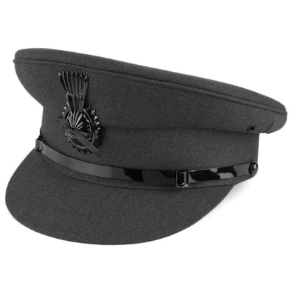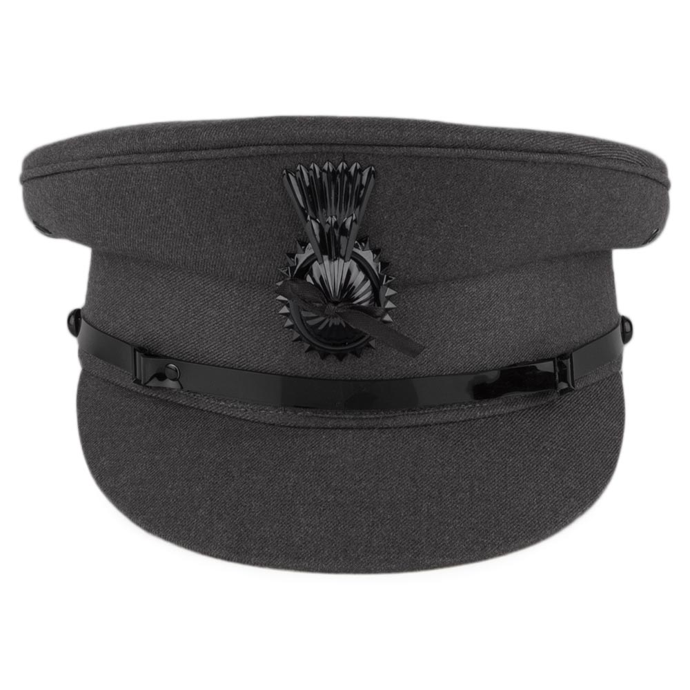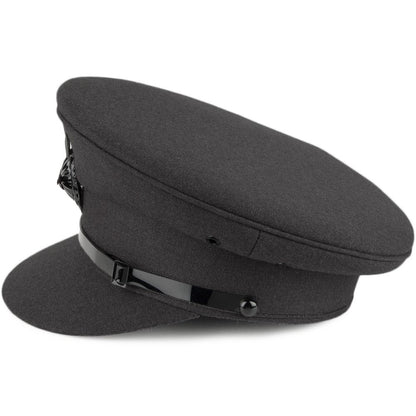 Esta es ala gorra chófer de Denton en gris. Esta gorra cuenta con un cordón ajustable, una escarapela decorativa y una cinta interior de PVC con frontal de terciopelo para una mayor comodidad.