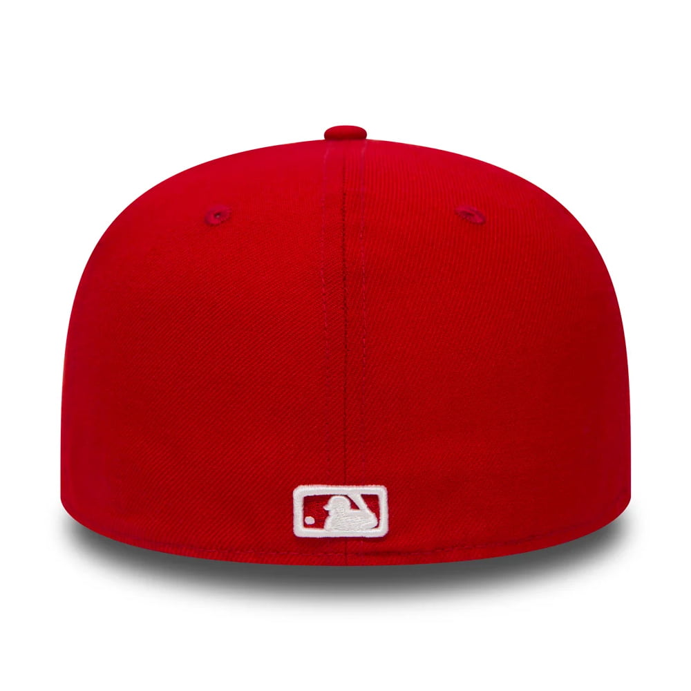 La gorra de béisbol 59FIFTY L.A. Dodgers MLB League Essential en rojo viene con una visera plana como todas las gorras 59FIFTY. La gorra presenta el logo del equipo bordado en la parte delantera, el logo de New Era bordado en el lateral y el logo de la MLB bordado en la parte trasera.