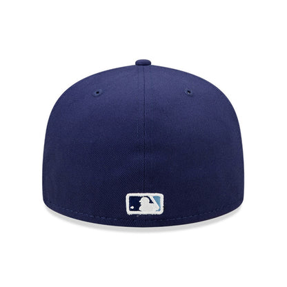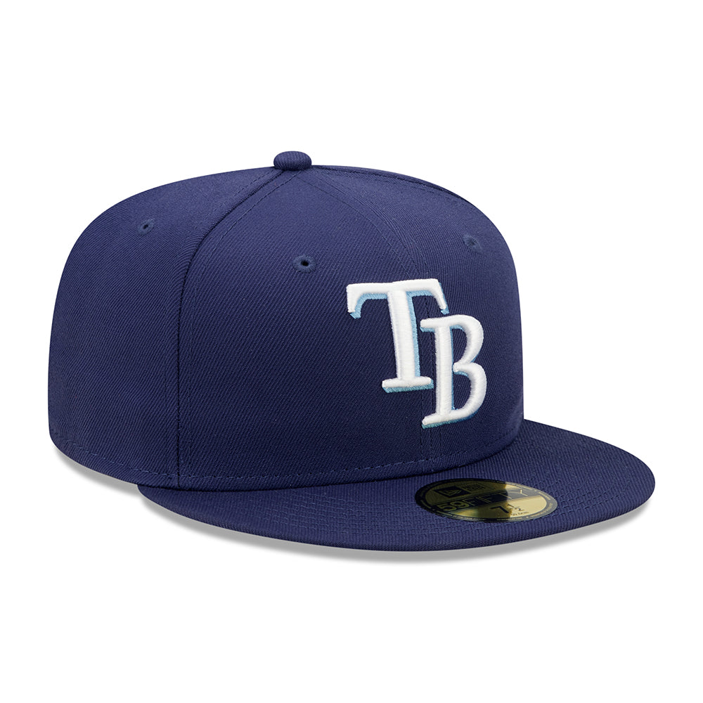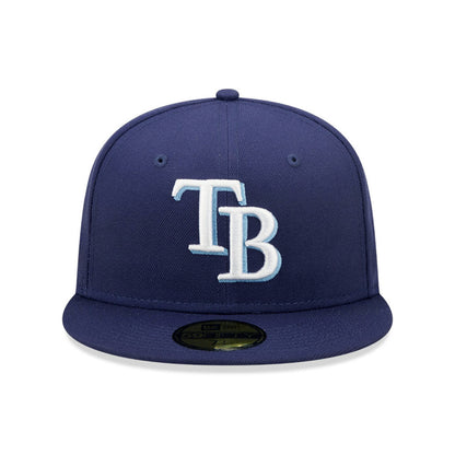 Esta gorra tiene el logo de los Tampa Bay Rays en una corona azul marino. El logo de MLB está bordado en la parte trasera de la gorra y el logo de New Era en el lateral.