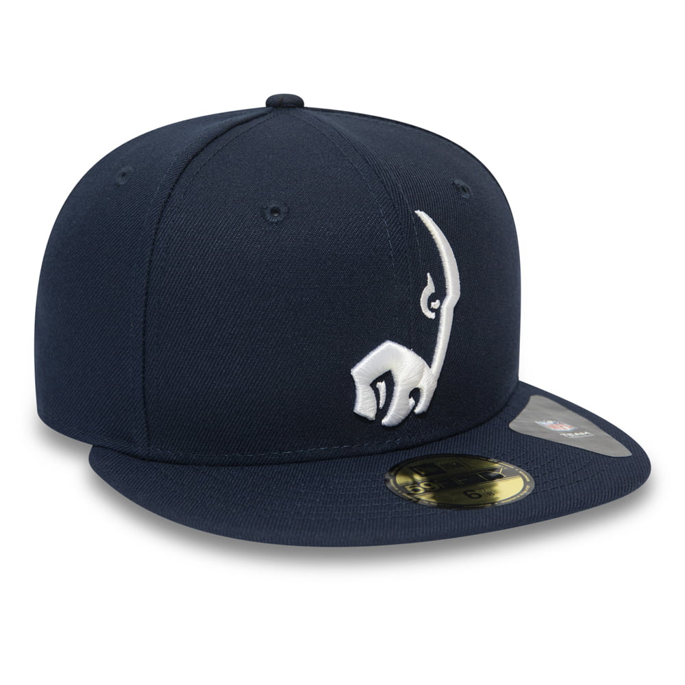 Gorra de béisbol 59FIFTY NFL Team Tonal Shadow Logo de Los Angeles Rams de New Era en azul marino. La gorra cuenta con una versión deconstruída y más grande del logotipo del equipo en el frontal. El logotipo de New Era está bordado en un lado y el logotipo primario del equipo está bordado en la parte trasera. Por ser una 59FIFTY, la gorra cuenta con una visera plana, ojales y un ajuste en la parte posterior.