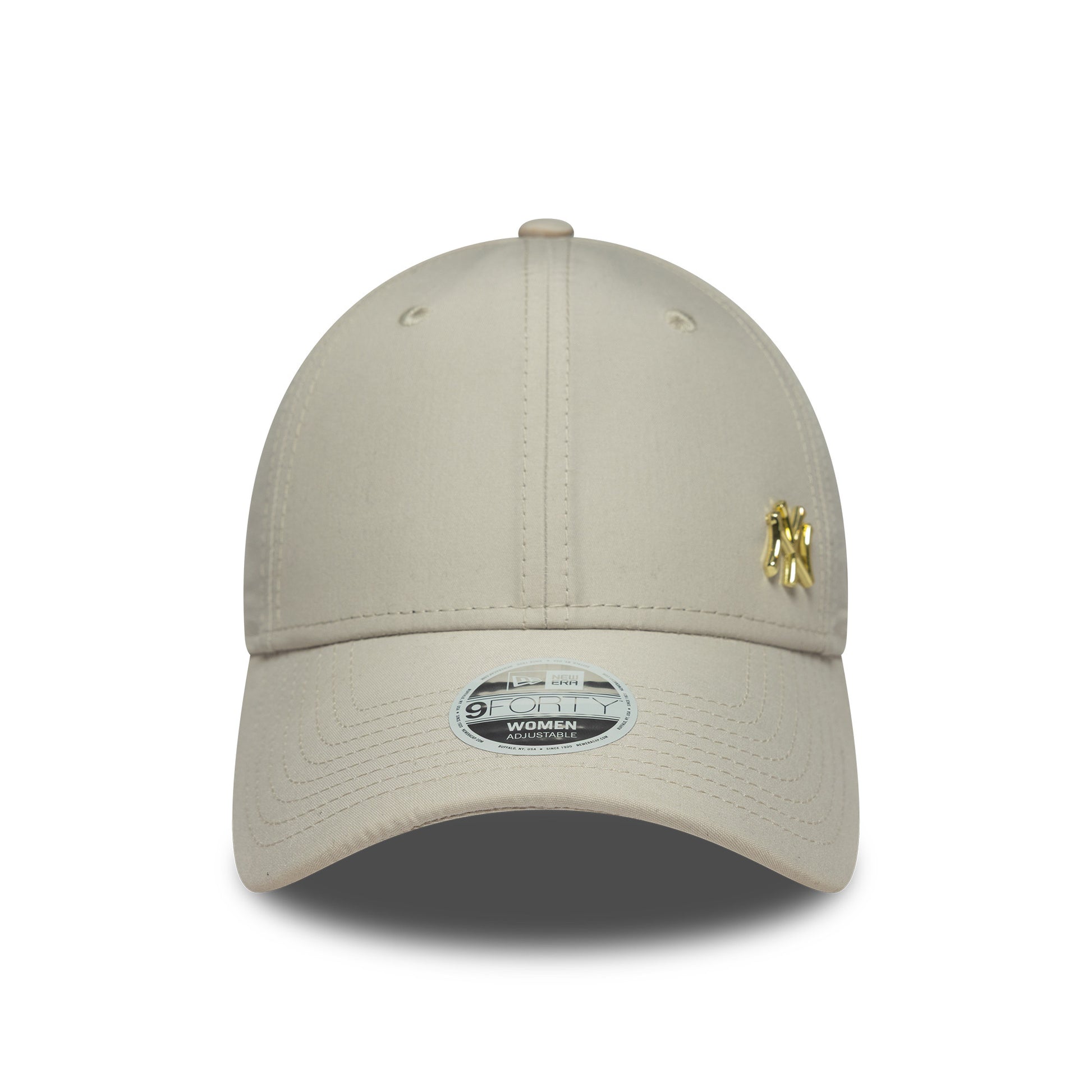 La gorra de béisbol para mujer 9FORTY MLB Flawless New York Yankees de New Era en gris piedra-dorado presenta el logo metálico del equipo bordado en los paneles frontales estructurados de la gorra y la bandera de New Era está bordada en el lado izquierdo. La gorra de seis paneles está hecha de 100 % algodón y presenta ojales transpirables con una visera curva y un botón en la parte superior. La parte trasera abierta tiene una correa de algodón ajustable con hebilla de metal para que el sombrero se ajuste a muchos tamaños.