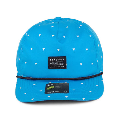 La gorra de béisbol Aerobill Classic99 Print de Nike Golf en azul. La gorra cuenta con la etiqueta de Nike Golf cosida en el frontal con triángulos impresos por todo el sombrero. La gorra Nike Aerobill es ligera, transpirable y absorbe el sudor para un ajuste cómodo. Hay un tira ajustable trasera que permite adaptarse cómodamente a la mayoría de las tallas.