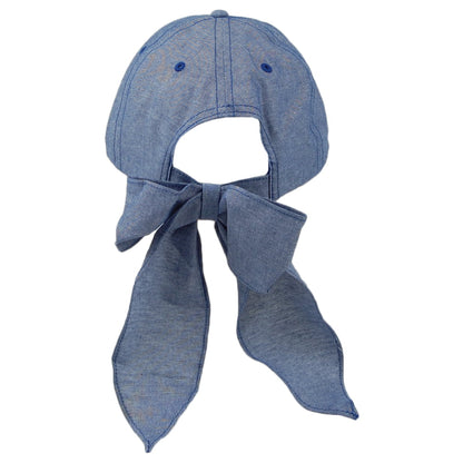 Esta es la gorra de béisbol Astrid Bow de Betmar en vaquero. La gorra de béisbol de algodón cuenta con un lazo grande en la parte posterior. Tiene una visera precurvada y ojales transpirables. Este es un gran estilo de verano de Betmar.