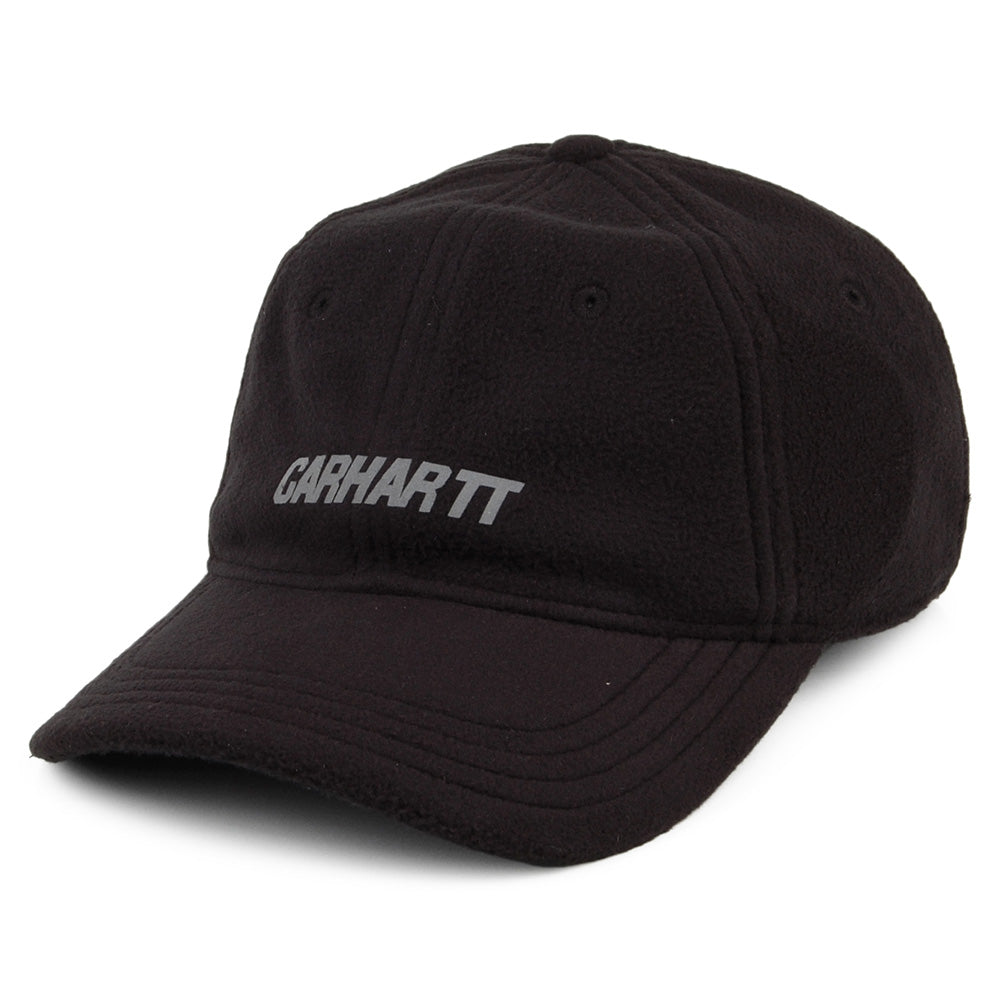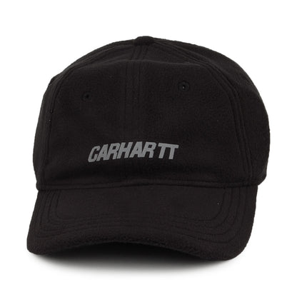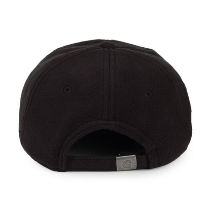 La gorra de béisbol Beaufort de forro polar de Carhartt WIP en negro. La gorra está hecha de un material cálido de forro polar y cuenta con el nombre de la empresa impreso en el frontal. Hay una tira ajustable en la parte trasera.