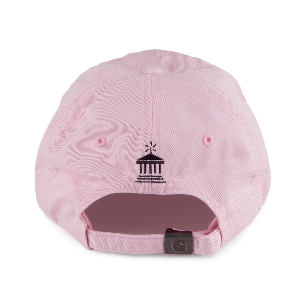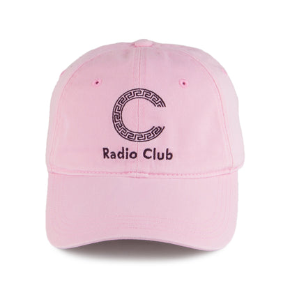 Es la gorra de béisbol Radio Club Logo de Carhartt WIP en rosa claro. Esta es una colaboración entre Carhartt y la marca australiana Perks And Mini. La gorra cuenta con un logotipo único de Radio Club en la parte delantera y un bordado sobre la tira ajustable en la parte trasera. La gorra está hecha de 100% de algodón y tiene una visera curvada.