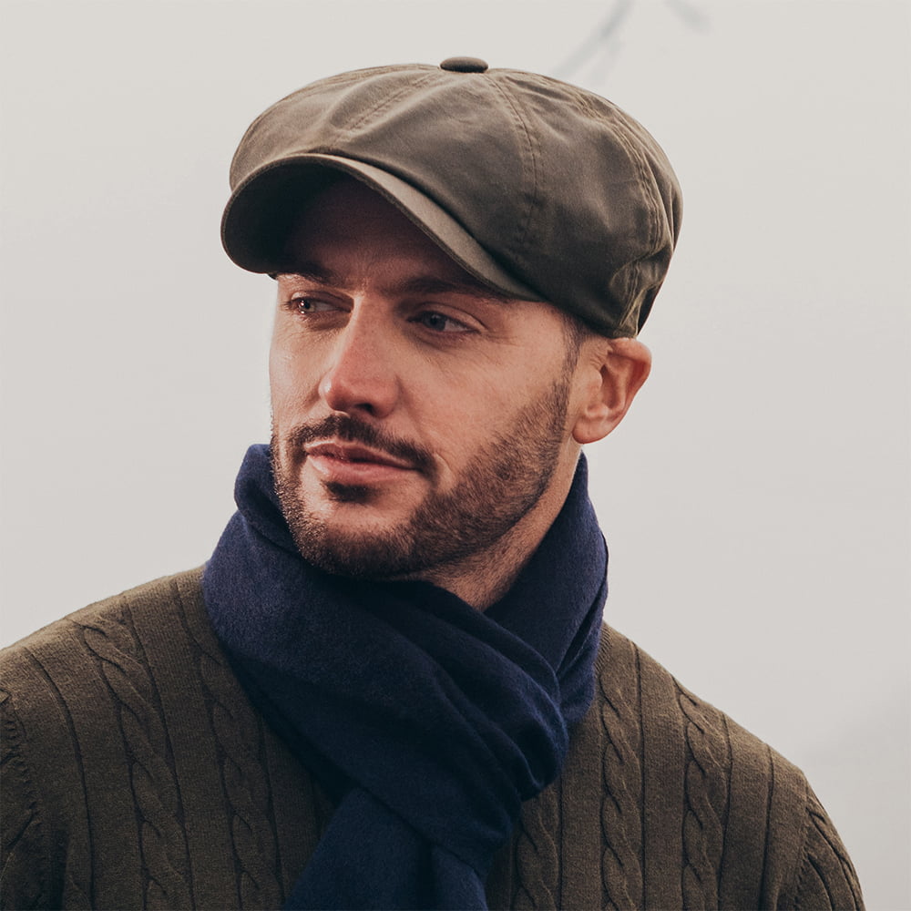 Gorra Newsboy Alfie de algodón encerado británico de Failsworth - Verde Oliva
