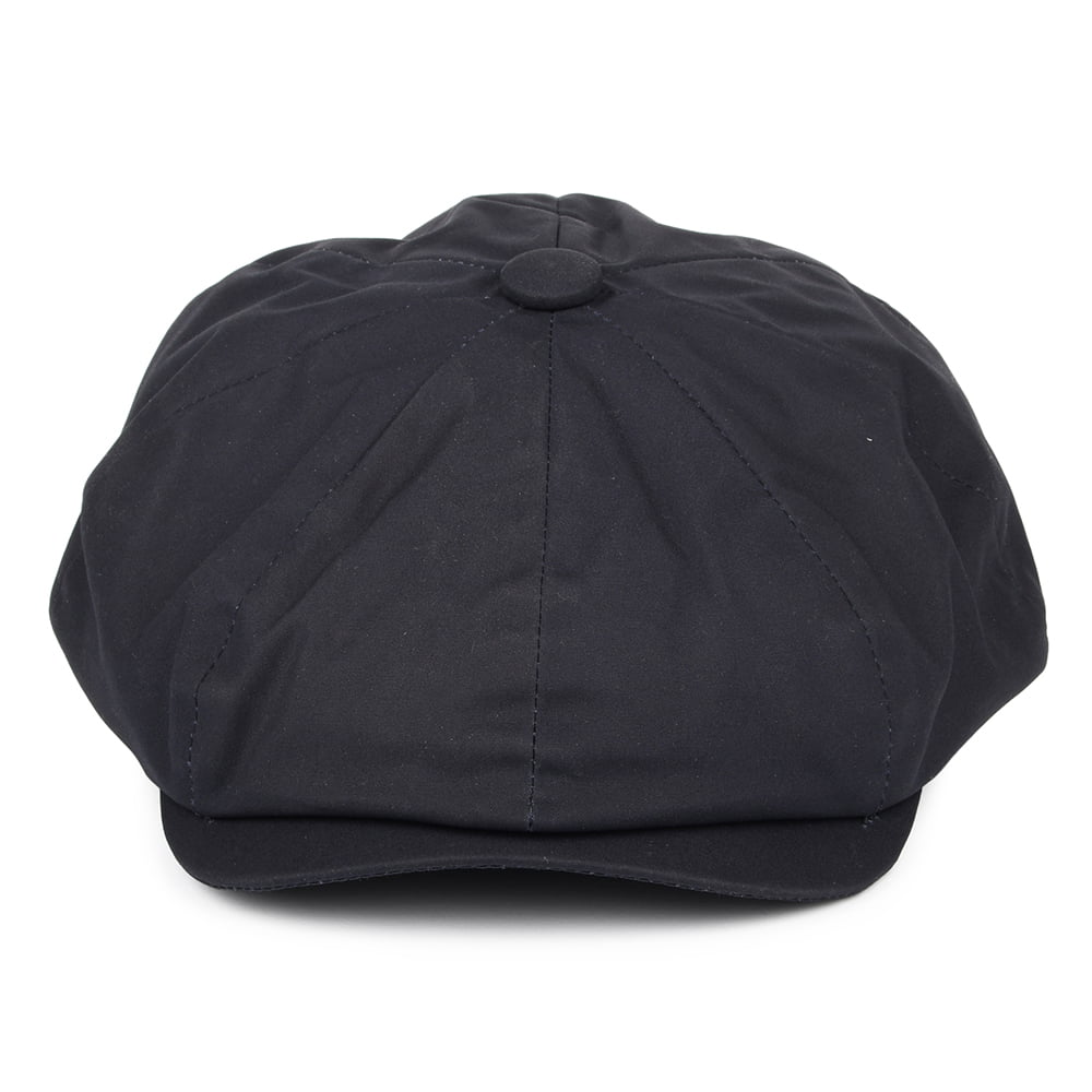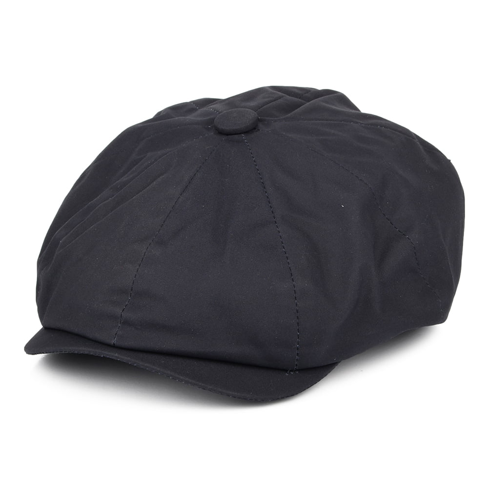 Esta es la gorra newsboy de algodón encerado de Christys en azul marino. La gorra está hecha de algodón encerado que es resistente al agua y durable para mantenerle seco sin importar el tiempo. Cuenta con una visera cosida y un forro para un ajuste cómodo.