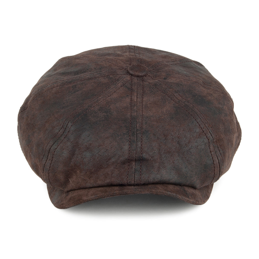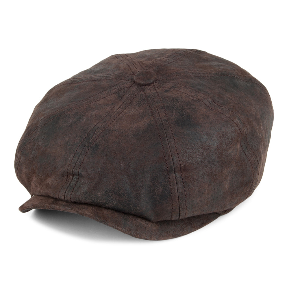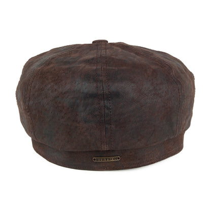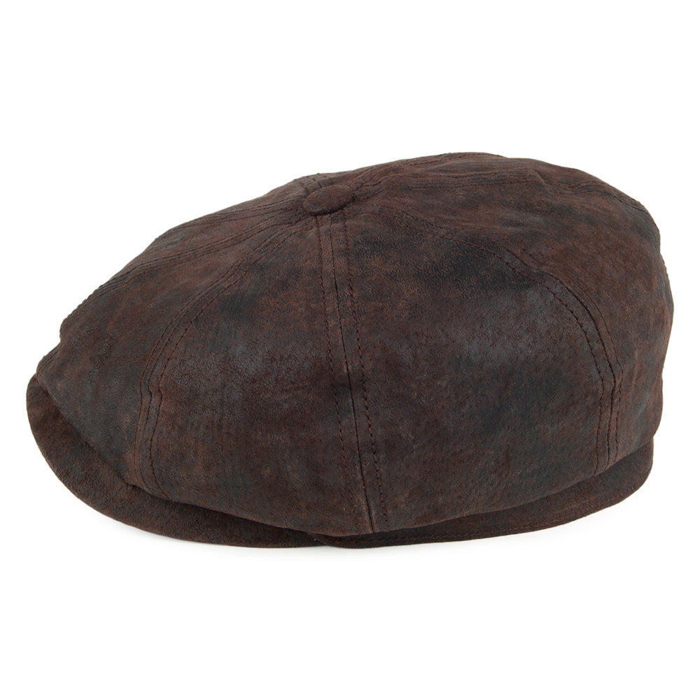 Stetson ha dado otro giro con la gorra Newsboy Hatteras de piel en marrón. Esta es una gorra bellamente cortada y hecha de 100% cuero totalmente forrado en sarga de algodón. El sombrero tiene el clásico corte de 8/4 con una visera cosida. El sombrero viene completo con un broche Stetson fijado en la parte posterior de la gorra.