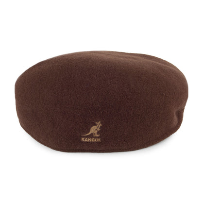 Esta gorra plana clásica de Kangol en color tabaco es conocida como 504 y siempre se ve genial. La gorra 504 de lana es cálida, transpirable y duradera. La visera está cosida a la parte superior y se puede curvar para un mejor ajuste. El icónico logo del canguro de Kangol está bordado en la parte trasera.