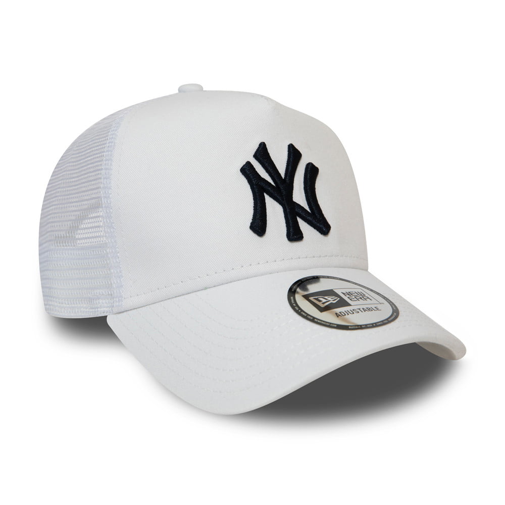 Esta es la gorra Trucker MLB League Essential de los Yankees de Nueva York de New Era en blanco-negro. La gorra cuenta con un frontal de algodón con el logotipo del equipo bordado en el centro. El logotipo de New Era está bordado en un lado. Tiene un broche ajustable en la parte posterior para el tamaño perfecto.
