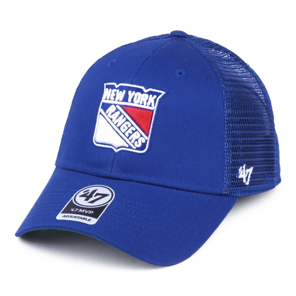 Esta es la gorra Trucker NHL Branson MVP New York Rangers de 47 Brand en azul. Tiene una visera curvada y un respaldo de malla suave. El logo del equipo está bordado en la parte frontal y el logo de la marca '47 está bordado en el lateral izquierdo. Además, cuenta con un cierre ajustable en la parte trasera para un ajuste fácil.