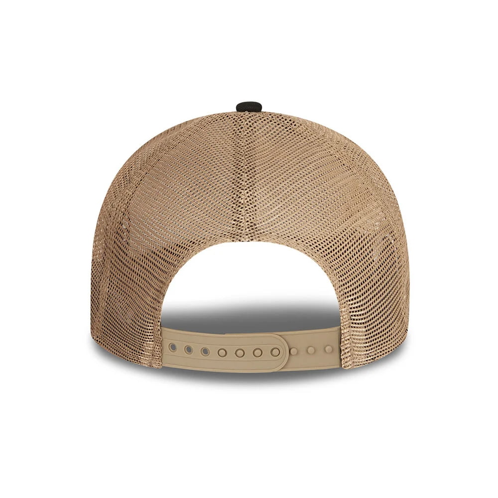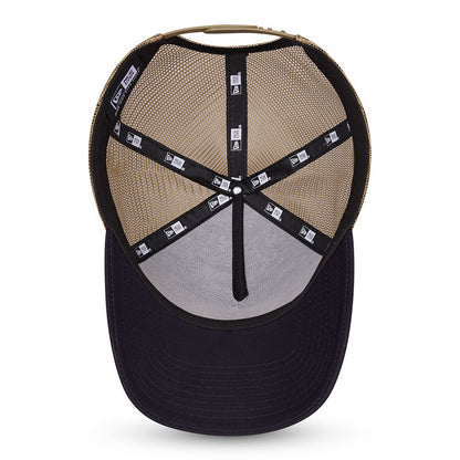 Esta es la gorra Trucker Sports Patch A-Frame de New Era en trigo. La gorra cuenta con un parche único cosido al frente de algodón. Los paneles de malla tienen la bandera New Era bordada en el lateral y un broche ajustable en la parte posterior.