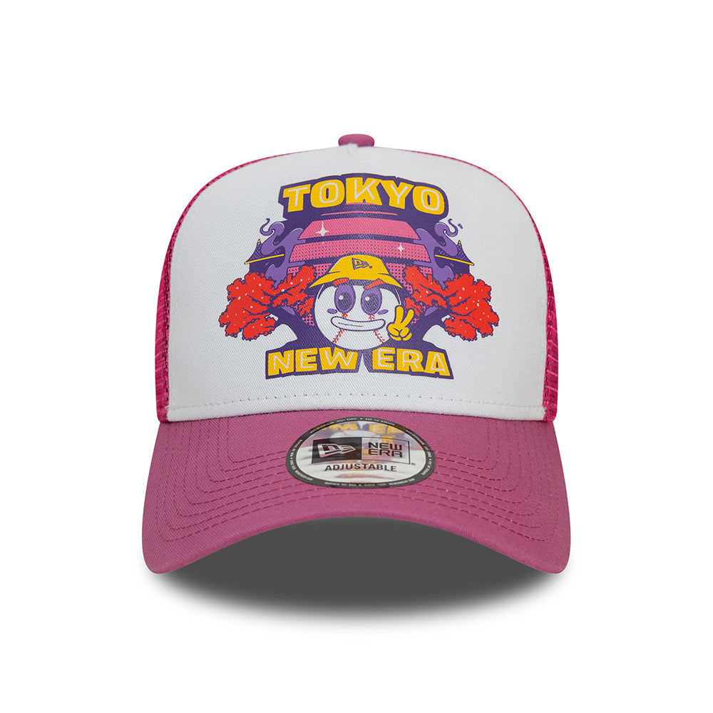 Gorra Trucker Tokyo A-Frame Graphic Print de New Era - Blanco-Rosa