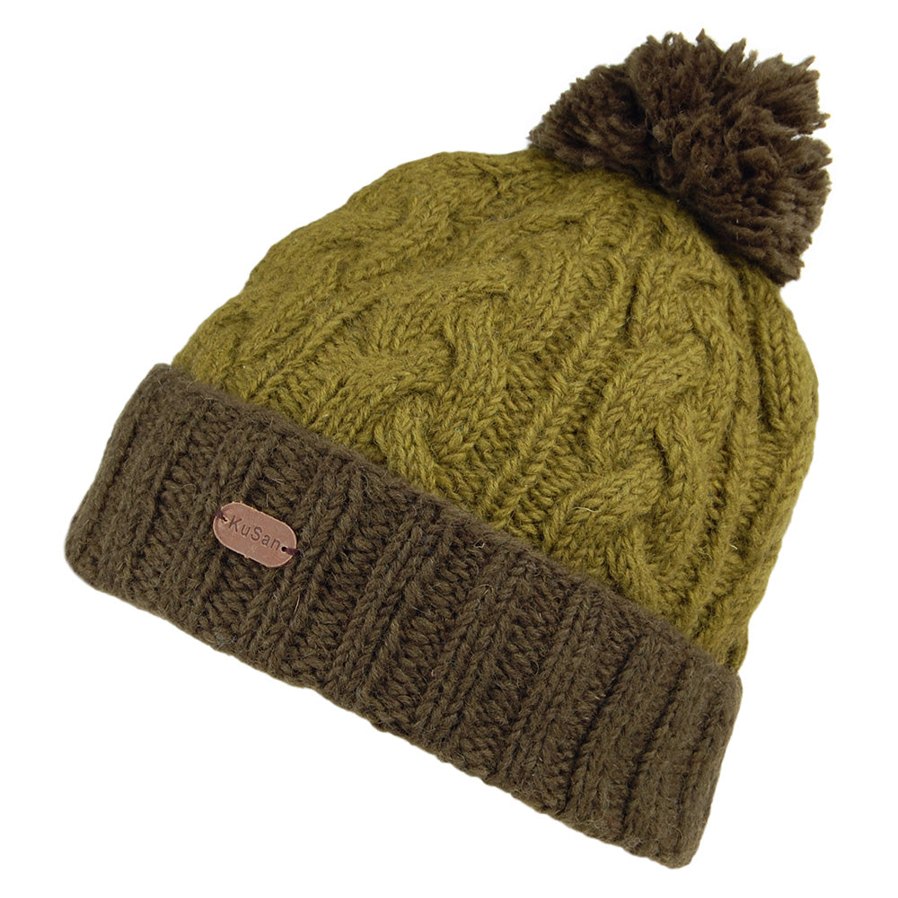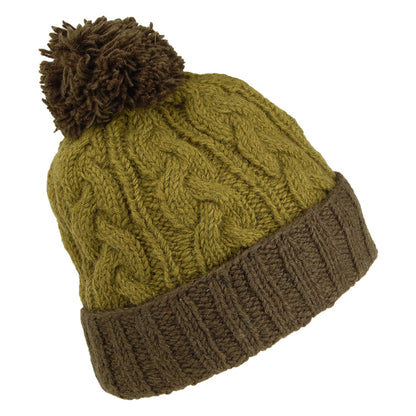 Gorro con pompón con vuelta de punto cable de Kusan Verde Oliva-Verde