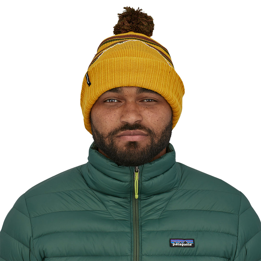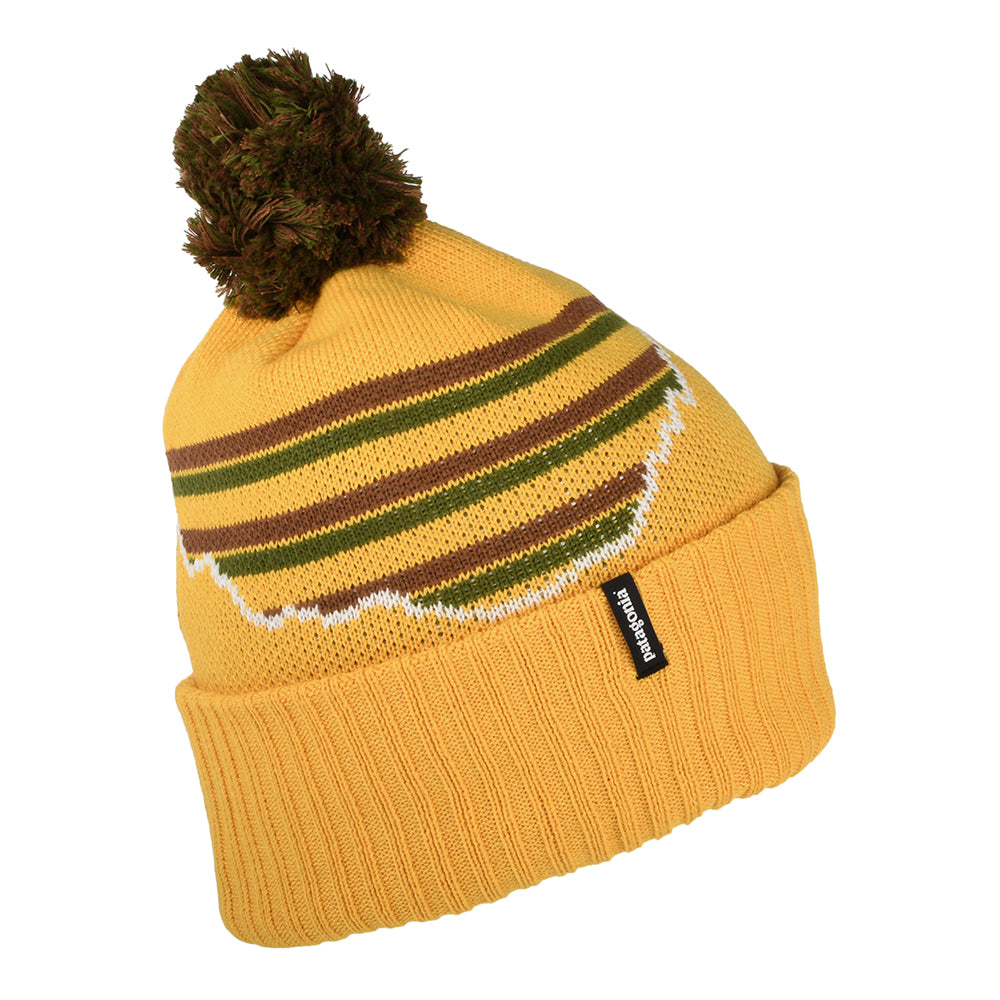 Gorro con pompón Fitz Roy Stripe Powder Town de Patagonia - Mostaza